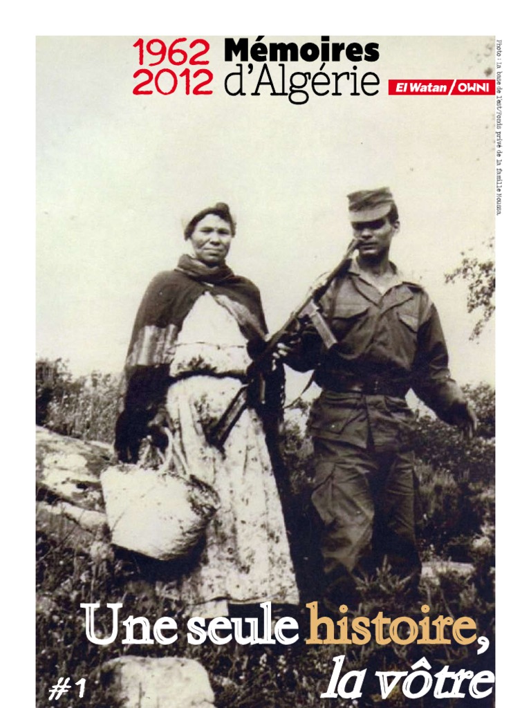 1962-2012 Mmoires dAlgrie. Supplment dit par la SPA El Watan Presse au capital social de 61 008 000 DA. http ://[Link]. Directeur de la publication : Omar Belhouchet. Pilotage ditorial. D'Alger : Adlne Meddi, Mlanie Matarese avec Yasmine Sad et Tristan Lesage de La Haye (El Watan Week-end). De Paris : Guillaume Dasquier, Pierre Alonso, Julien Goetz, Rodolphe Baron, Marie Coussin, Lila Hadi (OWNI Conception et ralisation OWNI). graphiques : Ammar Bouras. Iconographie : Fonds privs, Ahmed Moussa, AFP Coordination et correction des documents : Fatiha Meziani