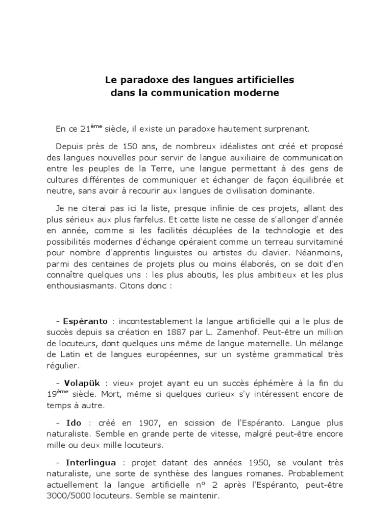 PVM Dakteks Klaba FR / Le Paradoxe Des Langues Artificielles Dans La Communication Moderne