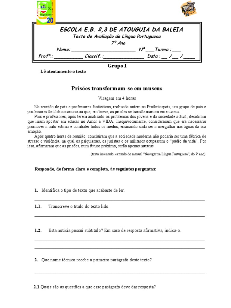 Teste de Avaliao de Lngua Portuguesa