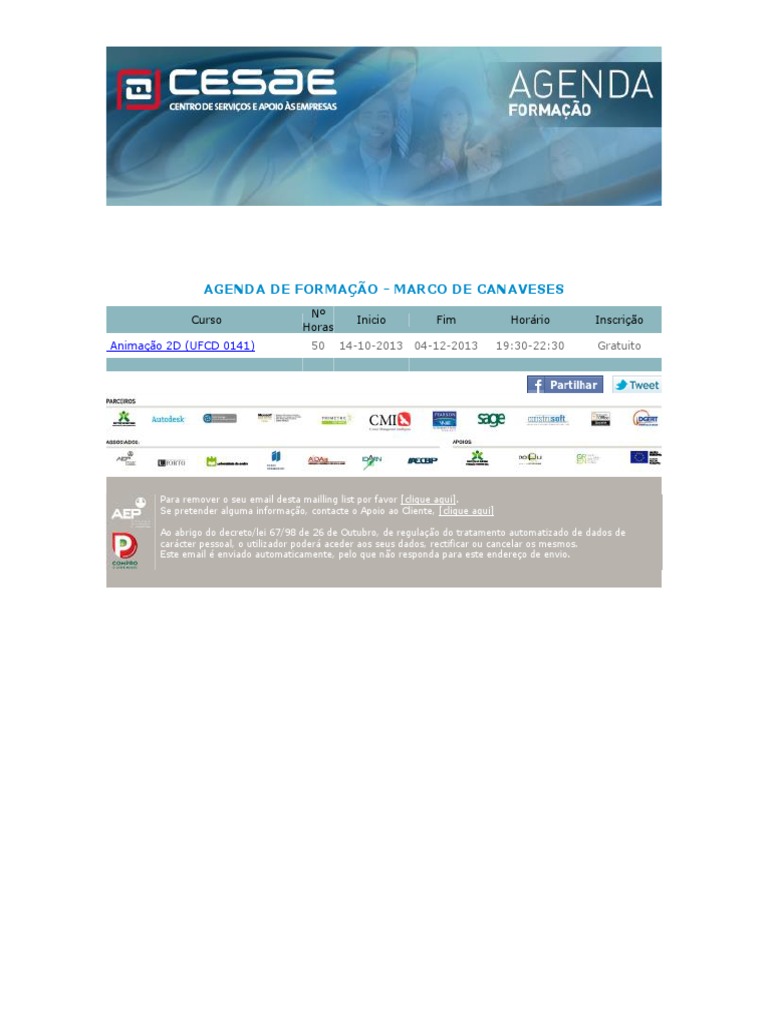 Curso Animao 2D (UFCD 0141) N Horas 50 Inicio 14-10-2013 Fim 04-12-2013 Horrio 19:30-22:30 Inscrio Gratuito