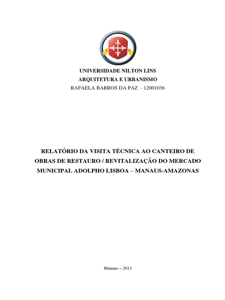 RELATRIO DA VISITA TCNICA AO CANTEIRO DE OBRAS DE RESTAURO / REVITALIZAO DO MERCADO MUNICIPAL ADOLPHO LISBOA MANAUS-AMAZONAS