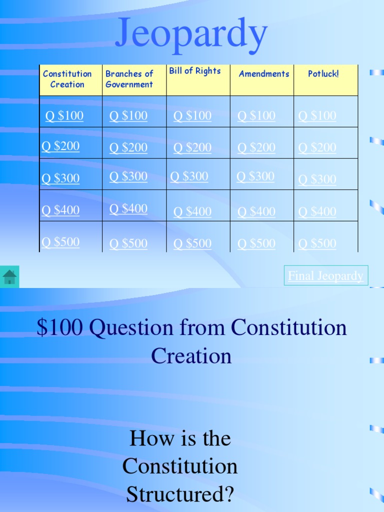 Constitution Creation Branches of Government Bill of Rights Amendments Potluck!
