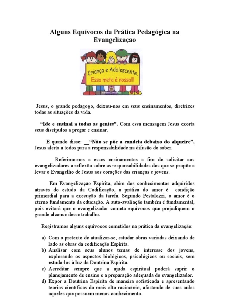 pois evitará que o evangelizador cometa equívocos que prejudiquem o