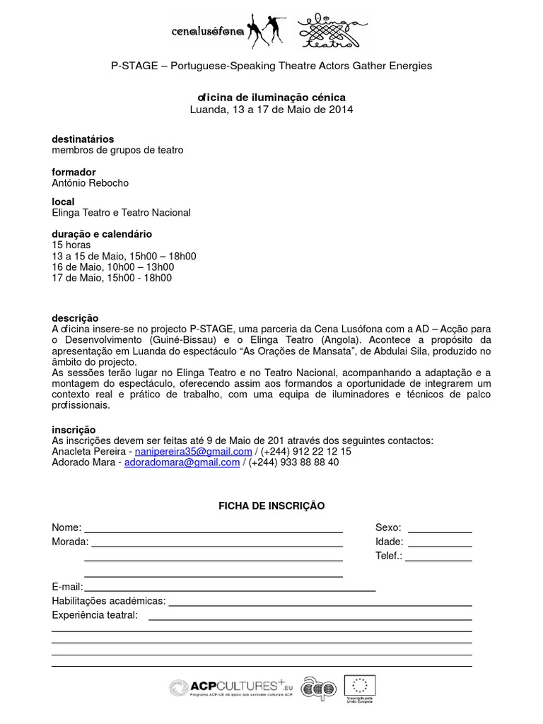 oficina de iluminação cénica Luanda, 13 a 17 de Maio de 2014
