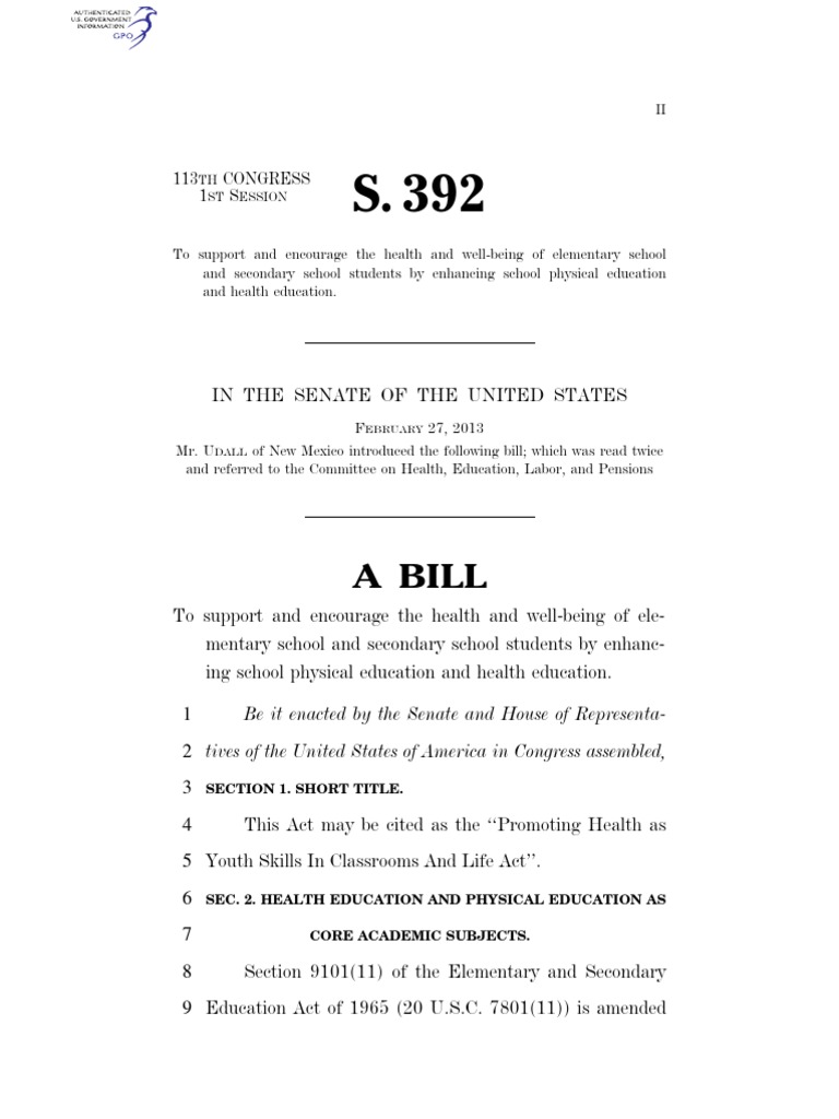 SEC. 2. HEALTH EDUCATION AND PHYSICAL EDUCATION AS