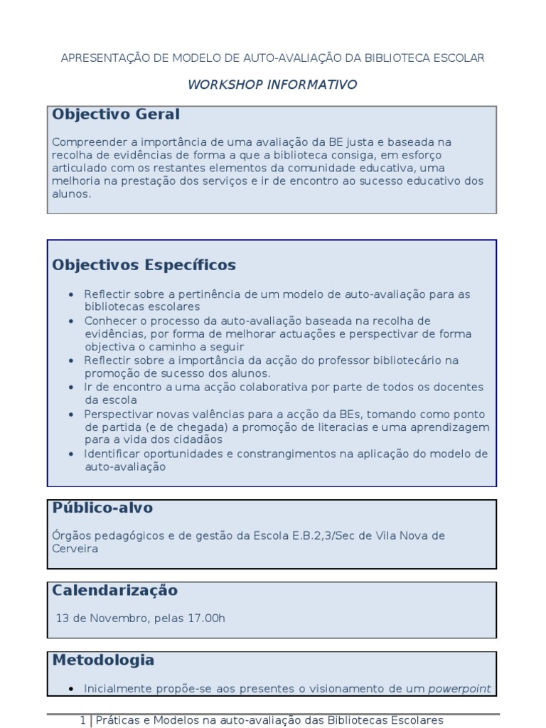 • Modelo de Auto-Avaliação das Bibliotecas Escolares da RBE