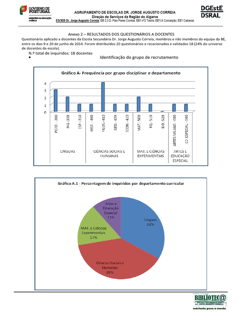 Questionrio aplicado a docentes da Escola Secundria Dr. Jorge Augusto Correia, membros e no membros da equipa da BE,