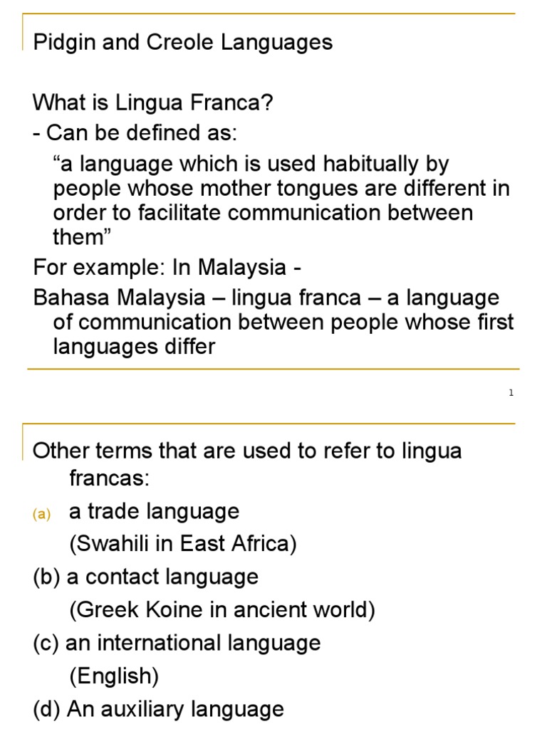 Lingua Franca – initially developed as a trade