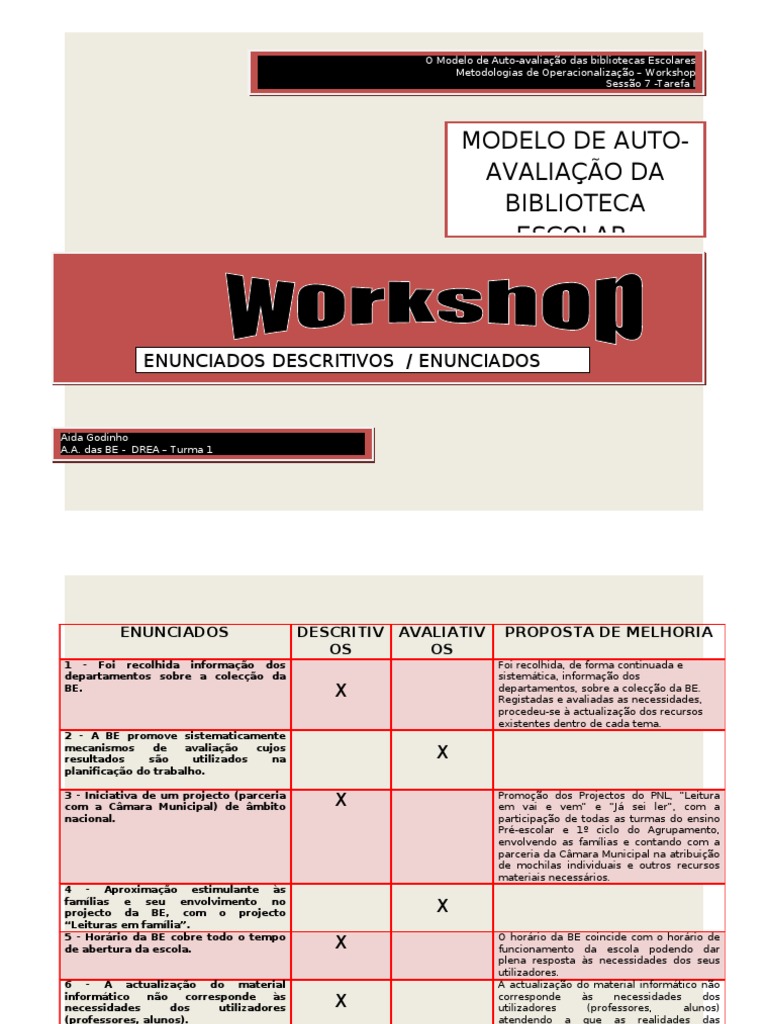 ENUNCIADOS DESCRITIV AVALIATIV PROPOSTA DE MELHORIA