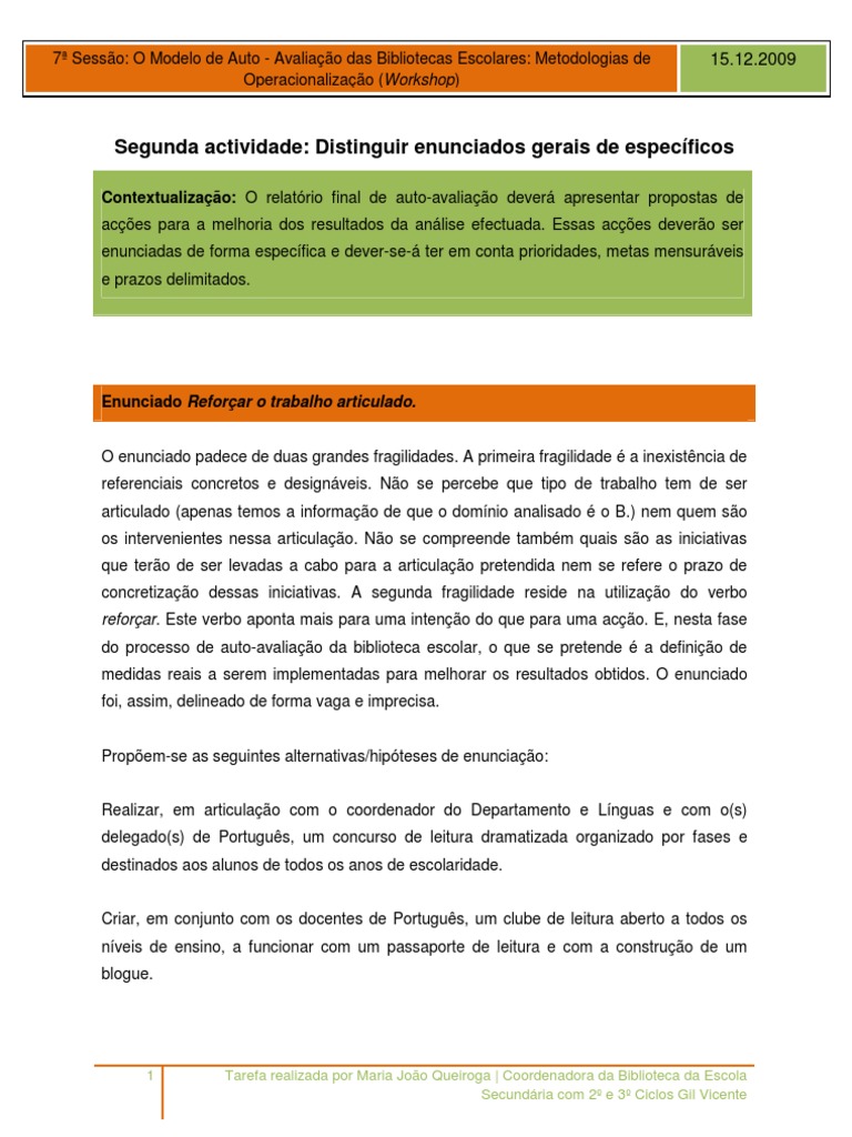 1 Tarefa realizada por Maria João Queiroga | Coordenadora da Biblioteca da Escola