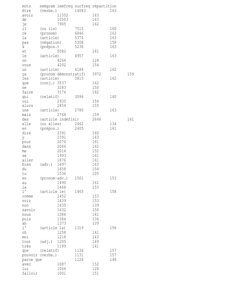 mots semgram lemfreq surfreq rpartition