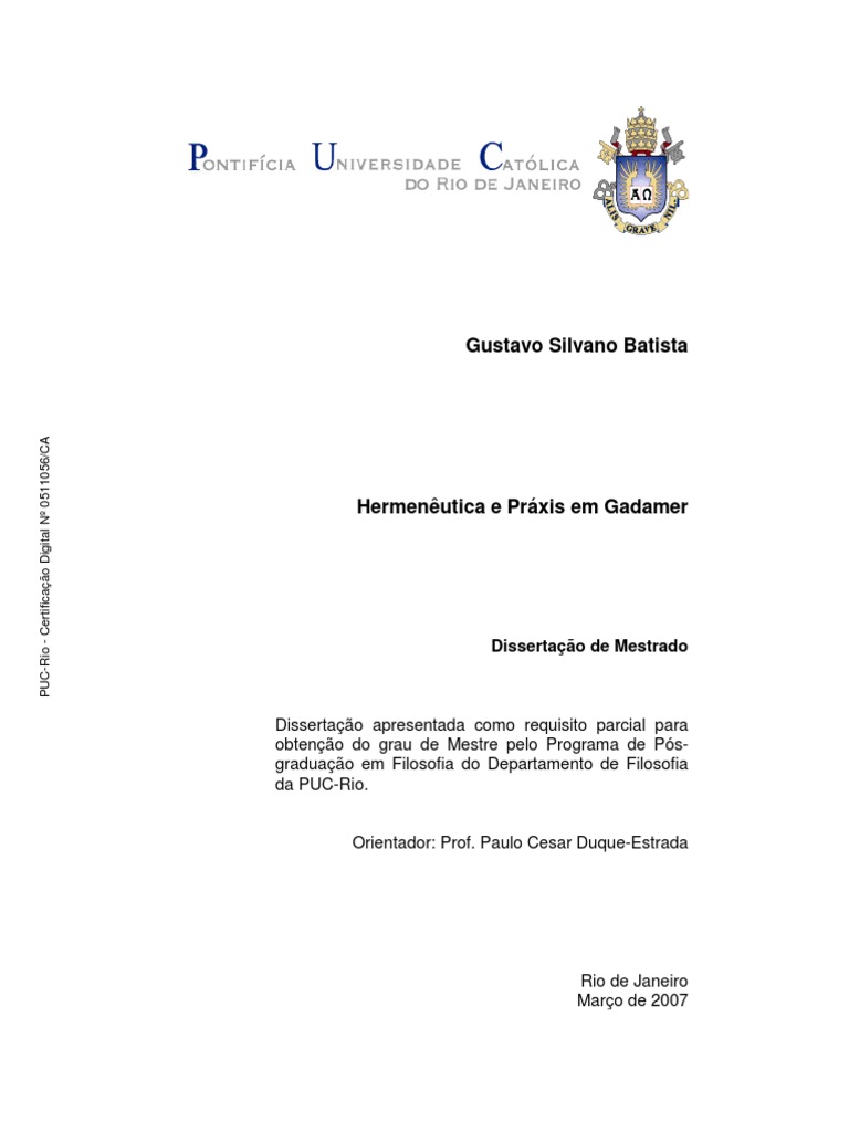 Prxis em Gadamer. Rio de Janeiro, 2007. 96 p. Dissertao de Mestrado