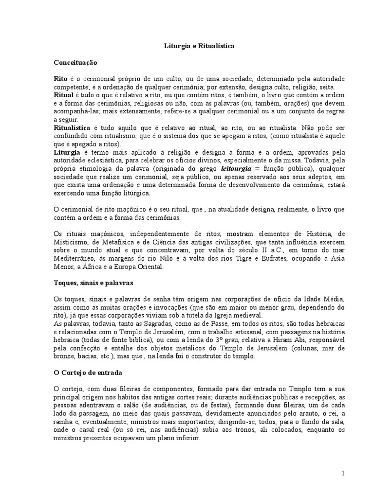 O cerimonial de rito manico o seu ritual, que , na atualidade designa, realmente, o livro que