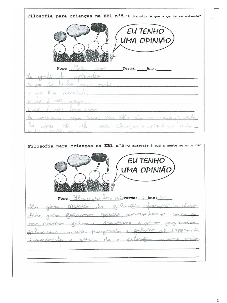 Filosofia para crianças: a opinião dos alunos do 2º ano, turma 3.