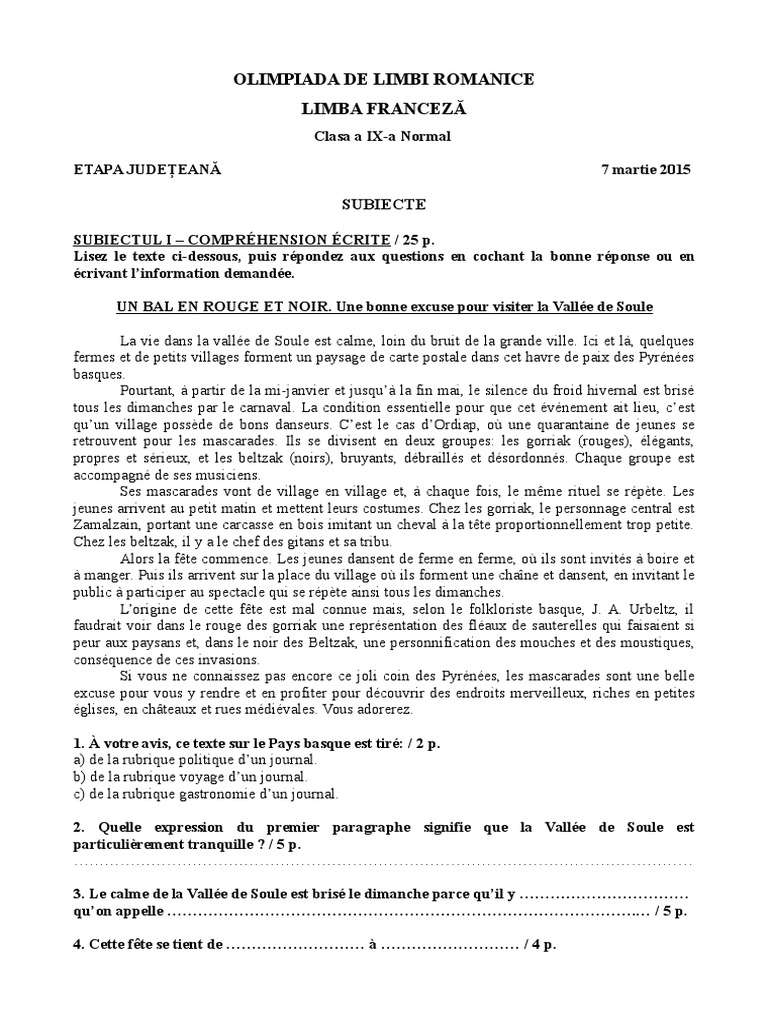 SUBIECTUL II STRUCTURES LINGUISTIQUES / 25 p.