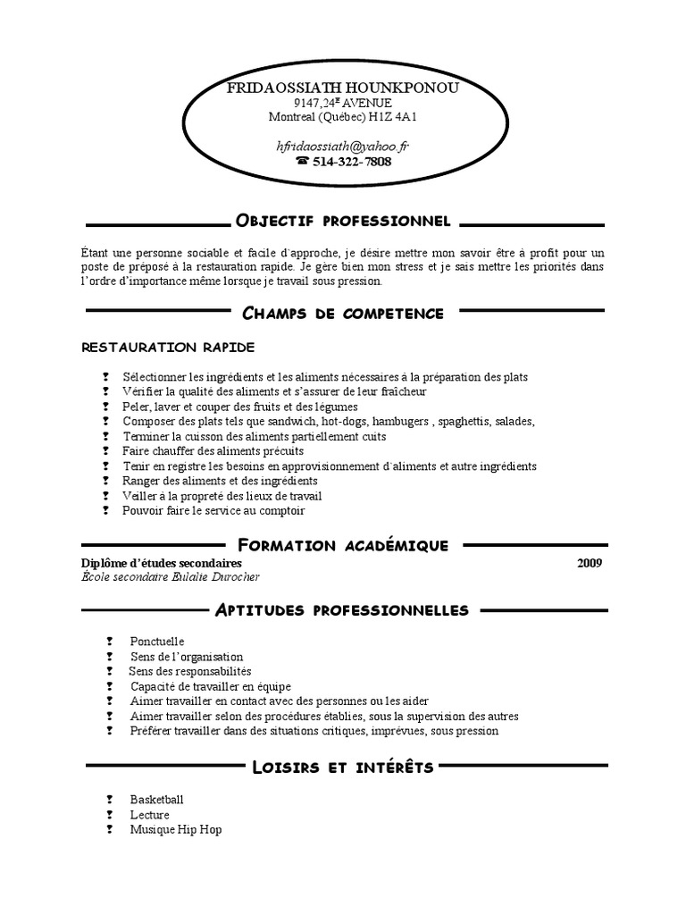 poste de prpos la restauration rapide. Je gre bien mon stress et je sais mettre les priorits dans