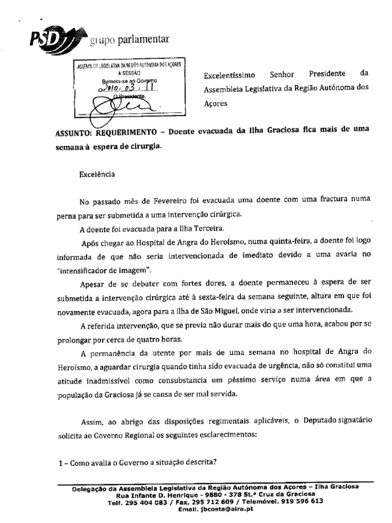 requerimento Sobre o Porto de Pescas Da Graciosa