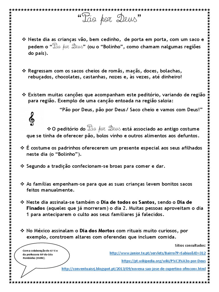 Neste dia assinala-se tambm o Dia de todos os Santos, sendo o Dia de