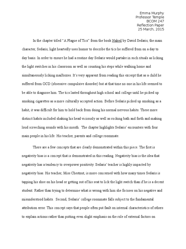 misunderstood habits. Second, Sedaris college roommate falls subject to the fundamental