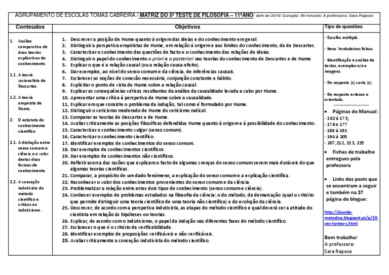 2. Distinguir a perspetiva empiristas de Hume, em relao origem e aos limites do conhecimento, da de Descartes.