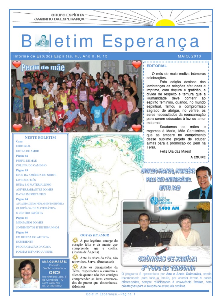 porta nto, de toda a fa mília Esperança . Nossa eterna gratidão e carin ho. Deus lhe ab ençoe a vida.