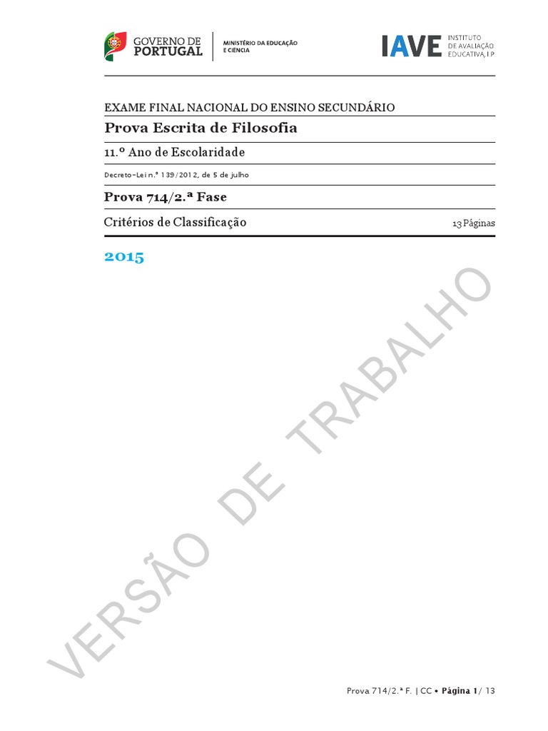 A classificao a atribuir a cada resposta resulta da aplicao dos critrios gerais e dos critrios especficos