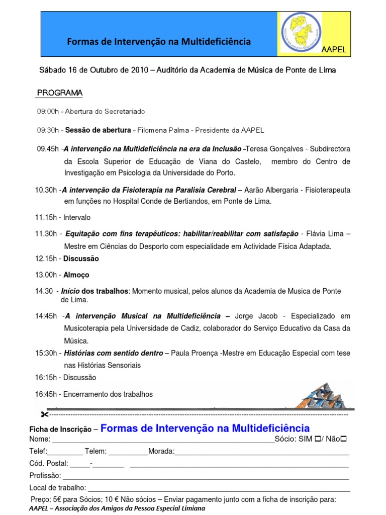 Ficha de Inscrição – Formas de Intervenção na Multideficiência