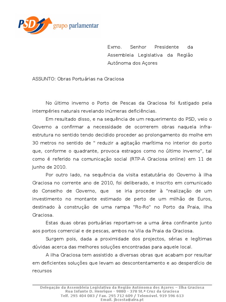 ASSUNTO: Obras Portuárias na Graciosa