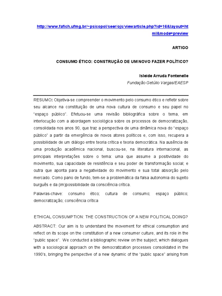 O objetivo deste ensaio teórico é o de refletir sobre o alcance do “consumo ético” na