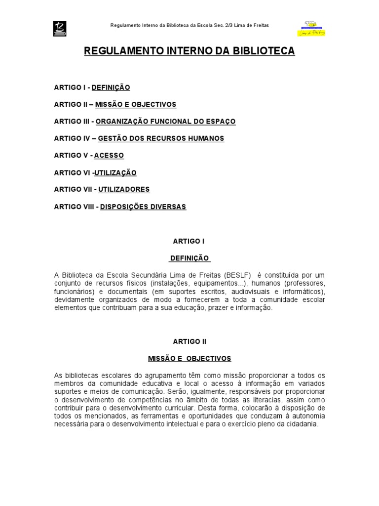 Regulamento Interno da Biblioteca da Escola Sec. 2/3 Lima de Freitas