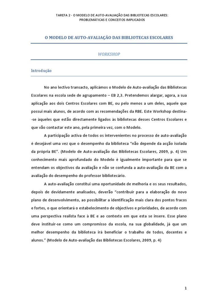 TAREFA 2 - O MODELO DE AUTO-AVALIAÇÃO DAS BIBLIOTECAS ESCOLARES: