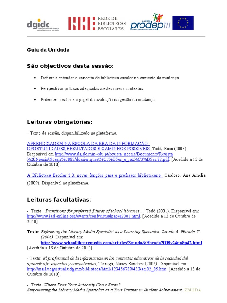 - Texto: Impact as a 21st-Century Library Media Specialist. CREIGHTON. (2008). Disponível em: