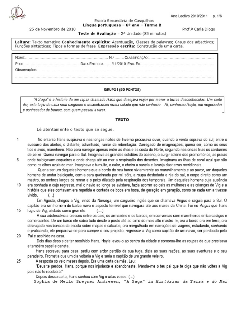 Escola Secundária de Casquilhos Língua portuguesa – 8º ano – Turma B