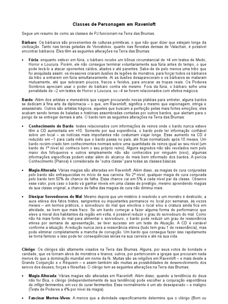 • Magia Alterada: Várias magias são alteradas em Ravenloft. Além disso, as magias de cura conjuradas