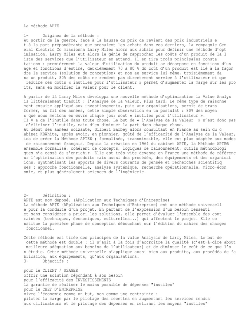 La méthode APTE (APplication aux Techniques d Entreprise) est une méthode universell