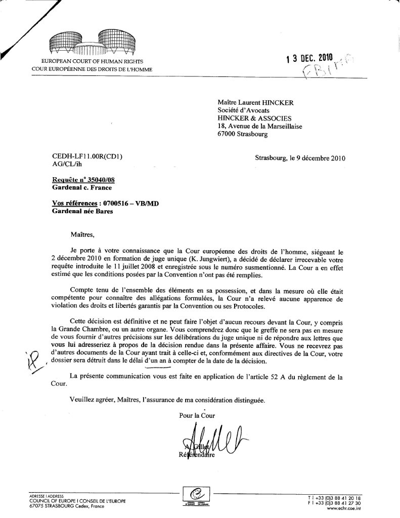 0 évaluation0% ont trouvé ce document utile (0 vote) 256 vues1 pageECHR: Decision Gardenal v. France