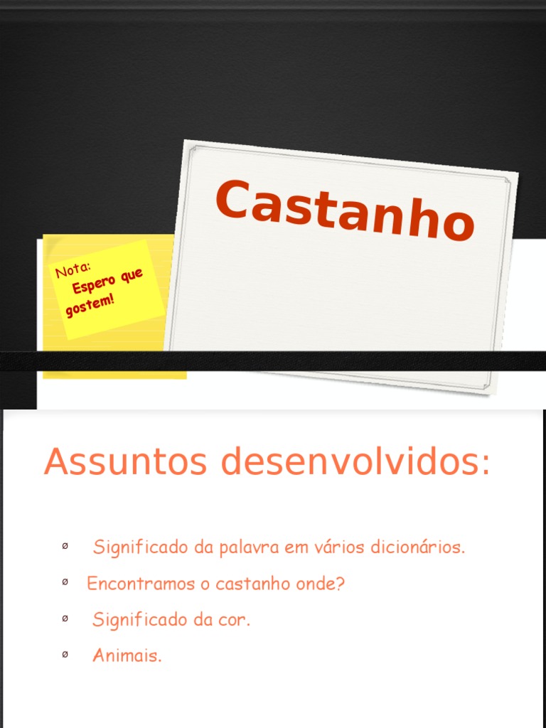 Significado da palavra em vrios dicionrios. Encontramos o castanho onde? Significado da cor. Animais.