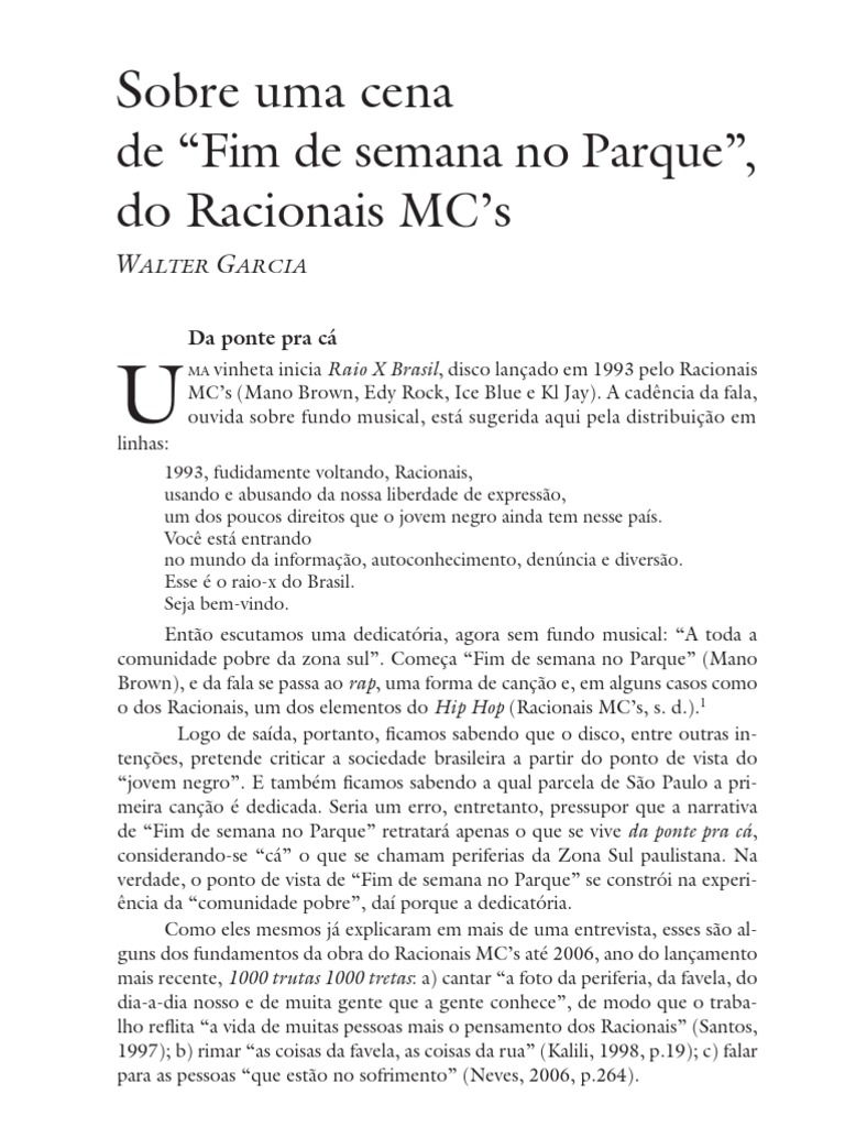 keywords: Racionais MCs, Brazilian rap, Brazilian popular music, Brazilian contemporary society.