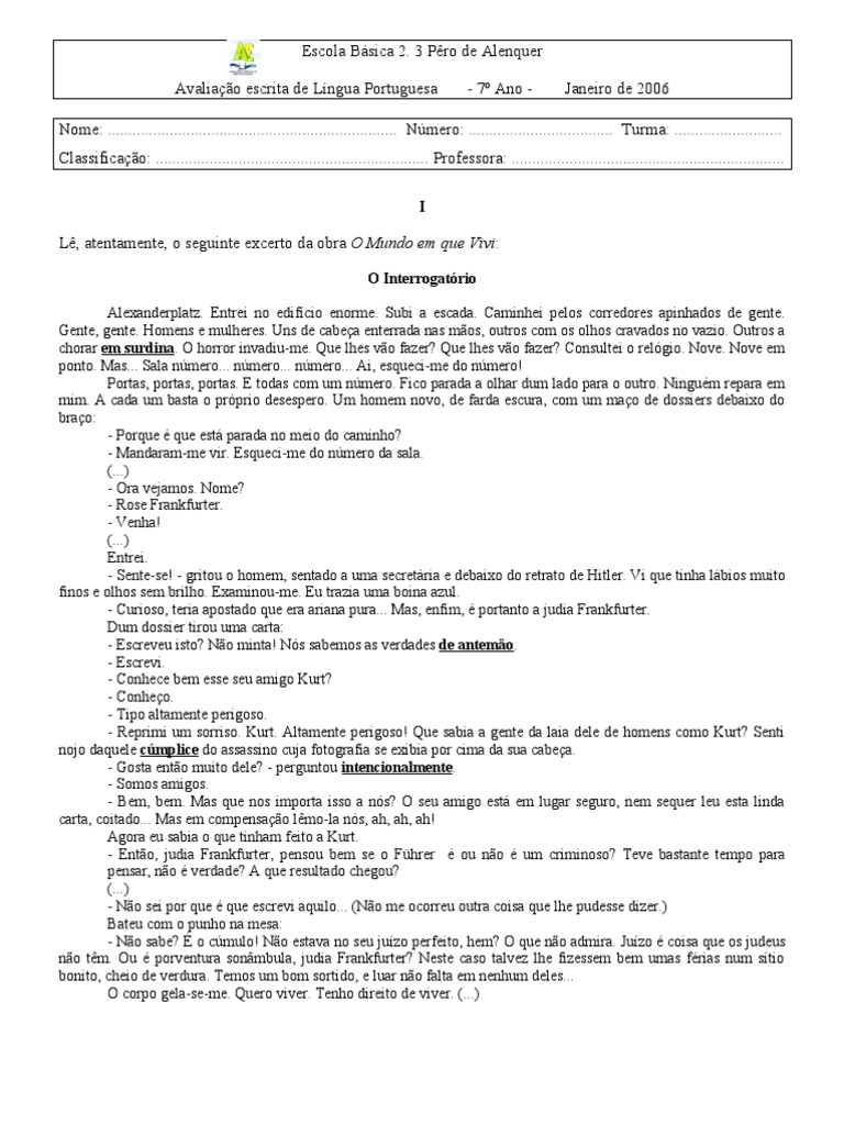 Avaliao escrita de Lngua Portuguesa