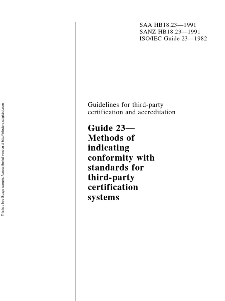 HB 18.23-1991, Guidelines for third-party certification and accreditation Guide 23 - Methods of indicating conformity with Standards for third-party certification systems