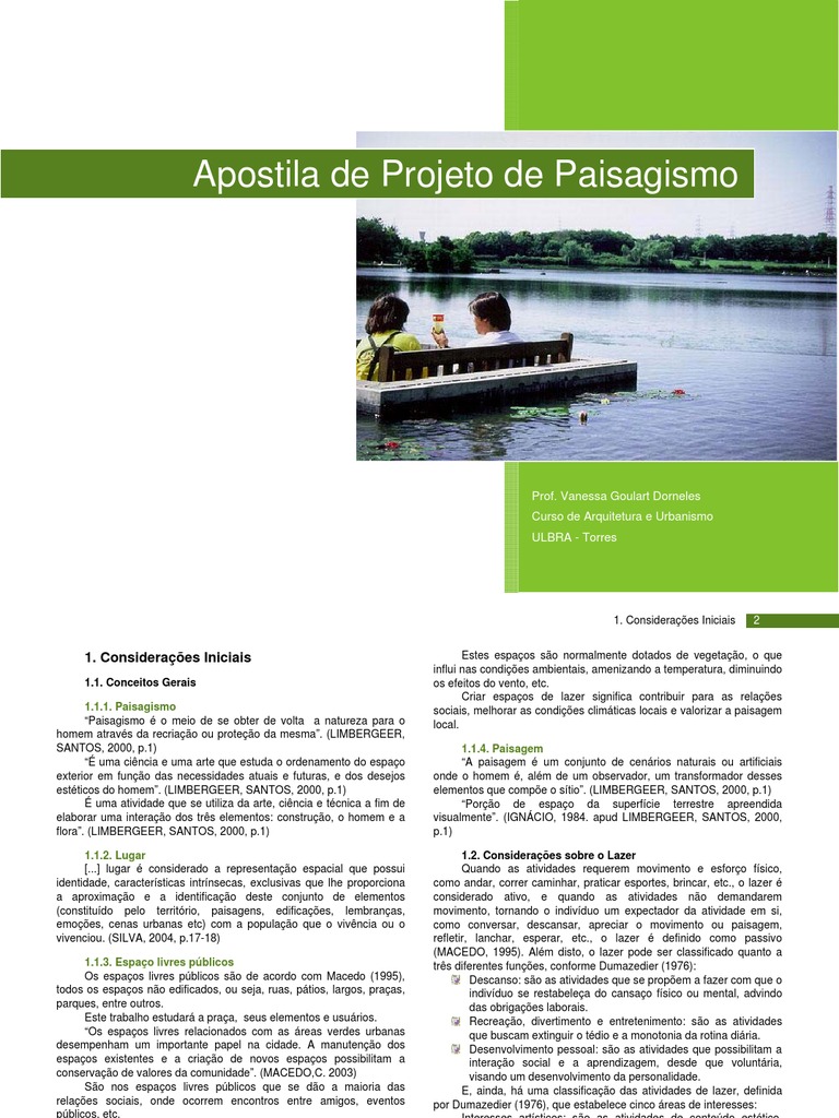 Engenharia de produção da Universidade Federal de Santa Catarina. Florianópolis 2002. 353p. LIMBERGER, Lucienne Rossi Lopes, SANTOS, Nara Rejane Zamberlan. Caderno Didático Paisagismo 1. Universidade Federal de Santa Maria. Março 2000. 63p. Macedo, Carla Ferreira de. Avaliação dos atributos determinantes na escolha de ambientes de permanência em espaço livre público a partir do método da grade de atributos. 2003. 150f. Dissertação (Mestrado em Engenharia de Produção) – Universidade Federal de Santa Catarina, Florianópolis. Macedo, Silvio Soares. Espaços Livres. In: Paisagem Ambiente Ensaios 7. São Paulo: FAUUSP, 1995. v7. p15-56. MASCARÓ, Lucia Raffo de. Ambiência Urbana. 1ªed. Porto Alegre: Sagra:DC Luzzatto, 1996.199p MASCARÓ, Lucia Raffo de; MASCARÓ, Ruan. Vegetação Urbana. Porto Alegre: 2002. PREFEITURA MUNICIPAL DE RECIFE. Secretaria de Planejamento, Urbanismo e Meio Ambiente. As praças que a gente tem, as praças que a quer: manual de procedimentos para intervenção em praças. Recife: A Secretaria, 2002. 118p. Lúcia Leitão, organizadora. SILVA, Leonora, Cristina, da. Requalificação de Espaço Público na Área Central da Cidade de Lages. Trabalho de Conclusão de Curso 1, Curso de Arquitetura e Urbanismo, Universidade Federal de Santa Catarina. Florianópolis, 2004.84p.