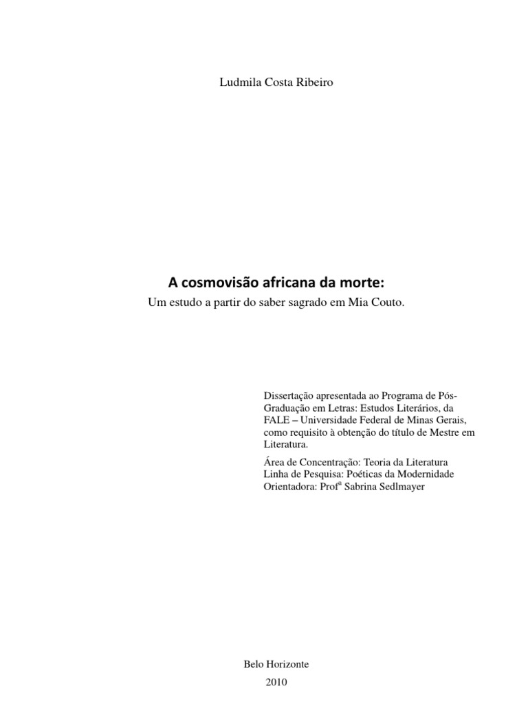 At o presente momento, interessei-me, a partir das linhagens da tradio etnogrfica, pelas imagens, signos e smbolos das culturas africanas de Moambique e pela maneira como estes se relacionam com a vida, com os sonhos e com as vises dos corpos possudos. Os estudos de etnografia apontaram, assim, para a maneira pelas quais estas imagens assumiam seu sentido total no interior de sistemas simblicos compartilhados a cosmogonia , para a maneira pela qual elas se reproduziam e, s vezes, modificavam-se por meio da atividade ritual. E, nesse caminho, imergi nos parmetros arcaicos acerca da morte e dos cones tradicionais.