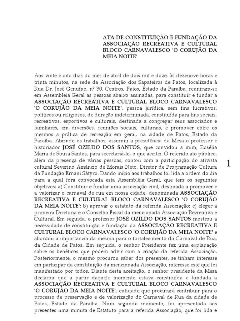 'O CORUJO DA MEIA NOITE', pessoa jurdica, sem fins lucrativos,