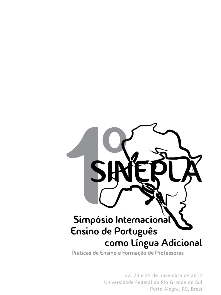 A Universidade Federal do Rio Grande do Sul (UFRGS), a Universidade de Campinas (UNICAMP) e a Universidade de Integrao da Amrica Latina (UNILA) tm a grande satisfao de promover o 1 SINEPLA - 1 Simpsio Internacional de Ensino de Portugus como Lngua Adicional. O 1 SINEPLA tem como objetivo ser um espao de atualizao e de discusso para pesquisadores, professores e alunos de graduao e de ps-graduao, abordando temas relacionados formao de professores e ao ensino de portugus como lngua adicional. O evento, que tem como sede a Universidade Federal do Rio Grande do Sul, ser constitudo por conferncias, mesas-redondas e grupos de trabalho, que renem relatos de pesquisas e de experincias de formao de professores, prticas de ensino e de avaliao e elaborao de materiais didticos. Este livro apresenta a programao geral do evento, os resumos das conferncias, das mesas-redondas e das comunicaes individuais que compem os Grupos de Trabalho. Aproveitamos este espao para dar as boas-vindas a todos e tambm para agradecer aos participantes e convidados do evento por tornarem este encontro possvel.