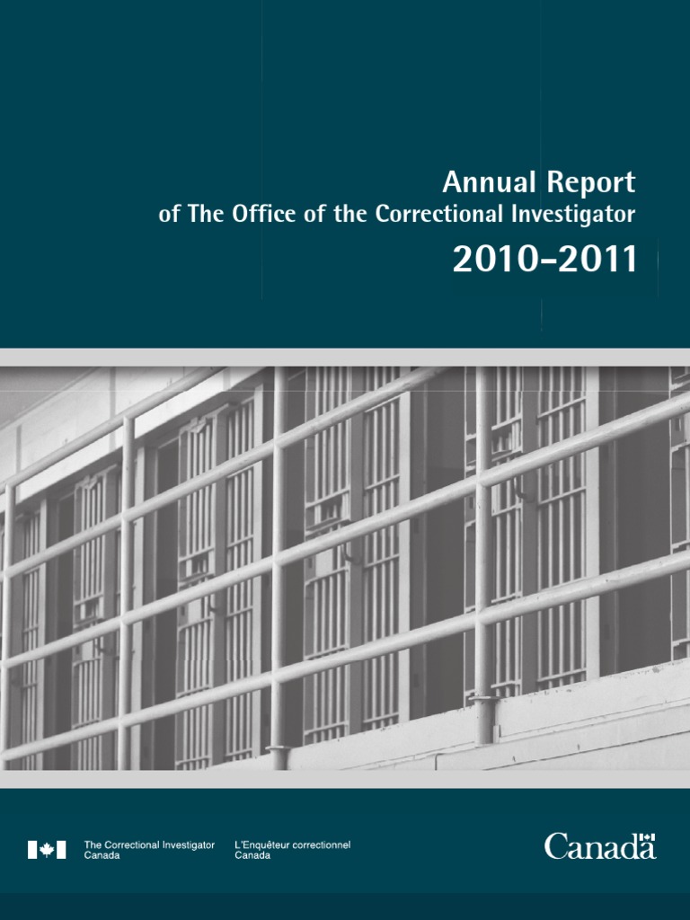independent and impartial perspective is increasingly important, and I regard this as part of my Offices public service mandate. It is a role which I value and respect. I am proud to offer the Offices 38th Annual Report. In reporting on key achievements as well as ongoing areas of concern, this years report contains several case illustrations where the Offices influence and interventions made a positive impact on federal corrections in FY 2010-11. Thematically, the report is organized into six key priorities around which the Offices investigative, reporting, resolution and policy resources are now largely structured: Access to physical and mental health services Preventing deaths in custody Conditions of confinement Issues facing Aboriginal offenders Access to correctional programming Issues affecting federally sentenced women offenders These priorities orient staff visits to correctional facilities and are key reference points in meetings, debriefings and correspondence between members of my staff and the Service. We expect that as correctional populations increase, so will the importance of these priorities. It bears reminding that offenders have identities and lives apart from their crimes. They are imprisoned as a consequence of their transgressions, not to be deprived of their humanity. The law follows offenders into prison it does not stop at the prison gate. As the Corrections and Conditional Release Act recognizes, offenders retain the rights and privileges of all members of society, except those rights and privileges that are necessarily removed or restricted as a consequence of the sentence. This legal principle is a fundamental expression of Canadian values. It reflects the fact that no one among us including those deprived of liberty forfeits
