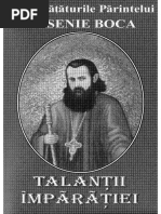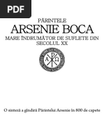 evlaDintre multele icoaneadipostitepe iconostasul viei populare,in Ardeal si nu doar, chipul Pirintelui fude senieBocaestede departecel mai aproape inima plini de rAvni evanghelici a poporului. Fie ci. urci creastade a mireasmi cereasci Prislopului,fie in lentila de piatri a Ferestrei Figira;ului, in puntea de istorie a Densqului ori in lucireade geniu a filigranului teologicde la Driginescu,Pirintele ArsenieBocarespiri cu tine. Sim! ocrotirealui, modul lui de a seodihni in Duhul Sfint. O simEi ;i daci nu e;ti contemporanla modul temporal, pentru ci Duhul Sflnt ii facepe SfingiiSii mereucontemporani in duh gi adevir cu tofi cei rivnitori si bucurogi de ciugi tareasfinteniei.Iati-i indemnul: ,,Desivi.rgirea iubirea sunt de vrijma;i nu sunt nici mi.carsfaturi evanghelice; implinirea sau neimplinirea porunci. Prin urmare, cu nilor, stim saucidem din cregtinism. nu descurajeze Si meni; fiecare misura sa,pe caretrebuiesi o ajungi. Pe pe Pe ce cunoa;temaceasta? celece ni seintAmpli; pe celece doui ne virt fieci.ruiasi le trecem, tin6.ndseami de aceste porunci. Providentaconlucri cu noi pentru desivArsirea noastri: prin toate imprejuririle grele,din care nu putem iegiteferi decit lepidindu-ne de noi in;ine, ducind zi o crucein fiecare gi imbiagi cu potrivnici, plini de uri, de Daci nu intelegem capabili si. ne dezlege viagaaceasta.