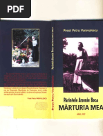 - Dar e pugin mai scumpi.! - Nu conteazi!Vin! Am venit acasi,agade bucuroasi!$i mi duc simbita.La biserici, nu era Pirintele George,cu carevoiam si vorbesceu despreSf. Liturghie. Nu era... Nu se potrivea cu planul meu. Niciodati nu se potrivescplanurile noastre omenesticu planurile lui Dumnezeu.Si mi-a dat ParinteleRadu cartea.Bineingeles, imediat am deschis, si vid la SfinteleDaruri, ce gisescacolo... N-aveamribdare, pe drum! Dar o doamni era tot dupi mine si am inchis-o. Zic: Lasa,sdajung acasd md apucsa o citesc! ;i Am venit acasi;i am citit-o de trei ori! VL spun sincer cd.mi-a fost si rusine de cAten-am ;tiut. Pirintele Arseniestia ci. am nevoiede asta.$i de acolo,de unde e, ce a zis?Lasd, md,p,Lndtl gdsefti parintele George ipi pe sd exPlice mai treceo saptamind fi tu tot ingrdmadita e;ti... sd cite;ti... Lasaca iyi trimit eu o carte! $tii M-am bucurat foarte mult! De atunci, nu mai indriznescsi.mi. duc la oriceori la slujbi. Mi duc de la inceput, indiferent unde as fi. $i numai daci, Doamne feregte, se intimpli ceva,nu ajung de la inceputla Sfinta Liturghie! Dar toate acestea toate acestea! se datoreazlP|rintelui Arsenie!De acolo de unde e, m-a ajutat, m-a luminat si continui si o faci! ,,Lumea deja l-a canonizat pe Pirintele Arsenie!" M-am rugat Pirintelui ;i mi-a ingiduit, m-a ajutat, dupi aceea, nevrednici, si ajung la Simbita, si asa, ajung la Prislop...Numai la Sinaianu am fost. Nu stiu casaunde a murit Pirintele! De fapt, n-a murit... Iar la