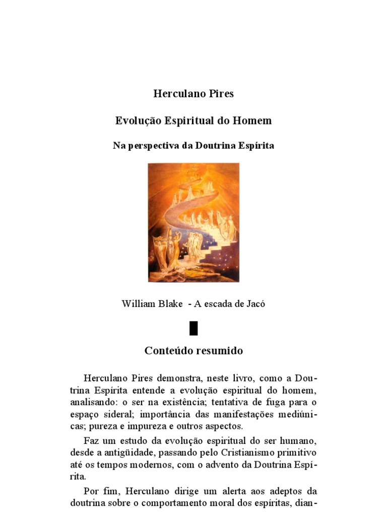 Herculano Pires demonstra, neste livro, como a Doutrina Esprita entende a evoluo espiritual do homem, analisando: o ser na existncia; tentativa de fuga para o espao sideral; importncia das manifestaes medinicas; pureza e impureza e outros aspectos. Faz um estudo da evoluo espiritual do ser humano, desde a antigidade, passando pelo Cristianismo primitivo at os tempos modernos, com o advento da Doutrina Esprita. Por fim, Herculano dirige um alerta aos adeptos da doutrina sobre o comportamento moral dos espritas, dian-