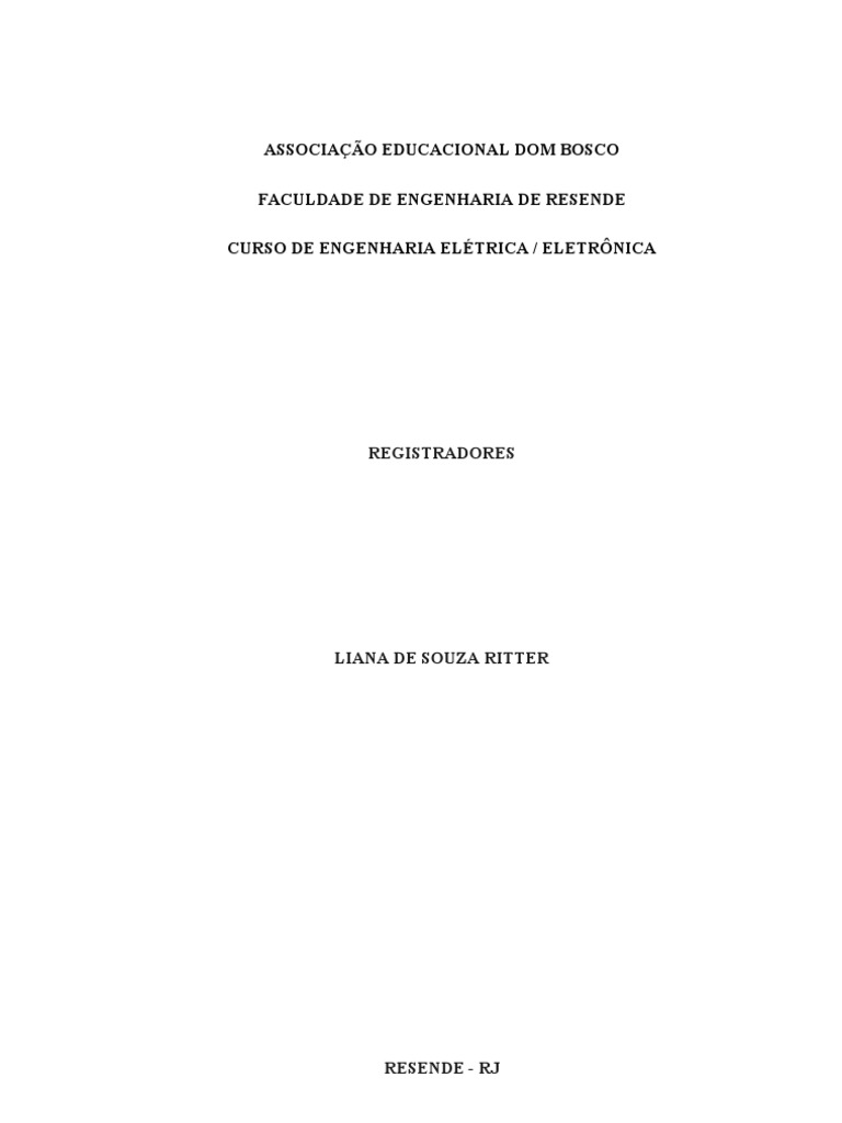 Relatrio de experimento apresentado Associao Educacional Dom Bosco, Faculdade de Engenharia de Resende, como exigncia da disciplina de Circuito Lgico e Sistemas Digitais do Curso de Engenharia Eltrica/Eletrnica, para Grau parcial do 4 Bimestre.