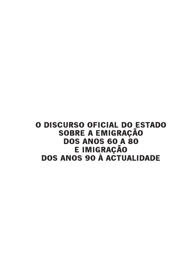O DISCURSO OFICIAL DO ESTADO SOBRE A EMIGRAO DOS ANOS 60 A 80 E IMIGRAO DOS ANOS 90 ACTUALIDADE